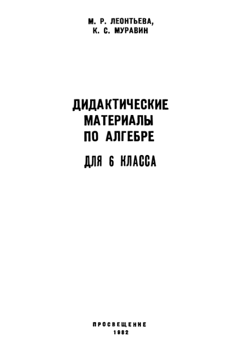 Дидактические материалы по алгебре. 6 класс (М.Р. Леонтьева. 1982 год) (Скачать)